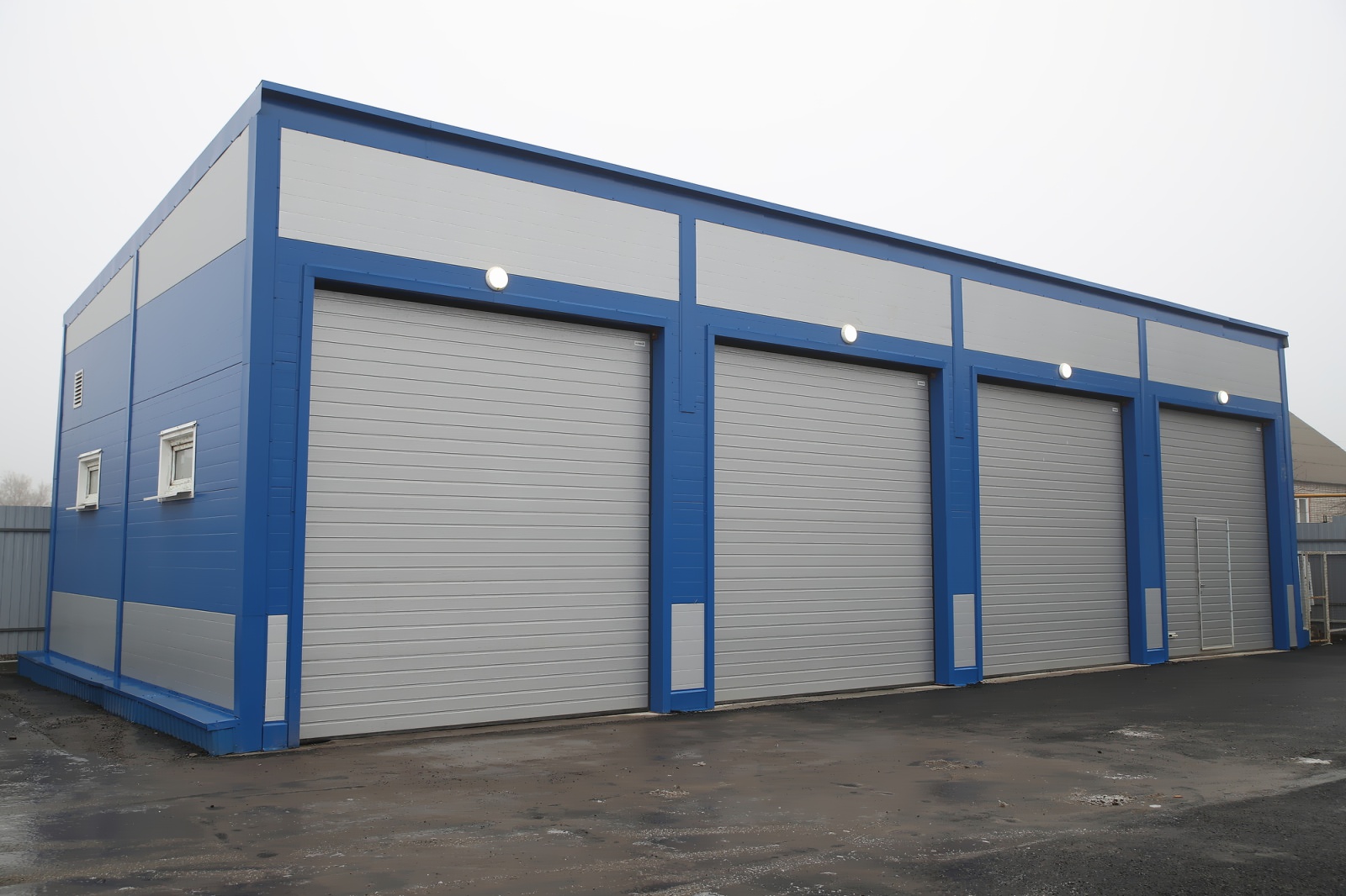 Гараж быстровозводимого типа из холодногнутого С-профиля (ЛСТК) на болтовых соединениях М16.